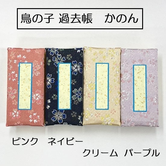 鳥の子 過去帳 茶 3.0寸(日付あり・日付なし)表装生地は赤・茶・紺の3色設定。 ¥2,780(税込) |