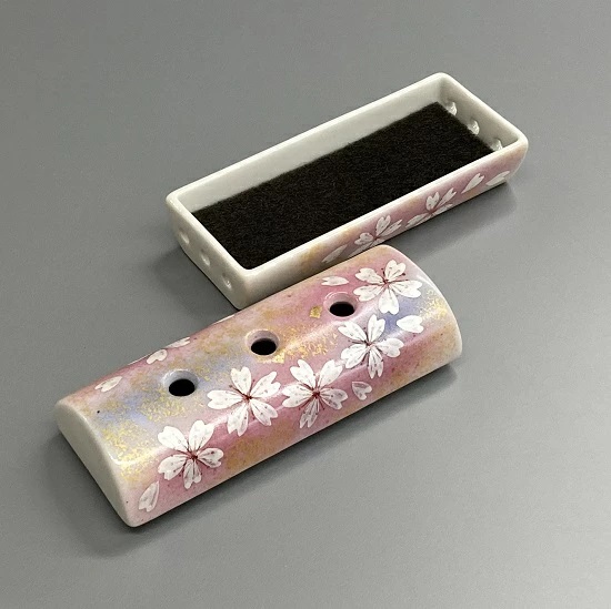 ほのか 九谷銀彩 九谷銀彩ピンク 仏具5点セット(中)銀箔ごしに表れる微妙な色彩が美しい仏具 ¥22,400(税込) |